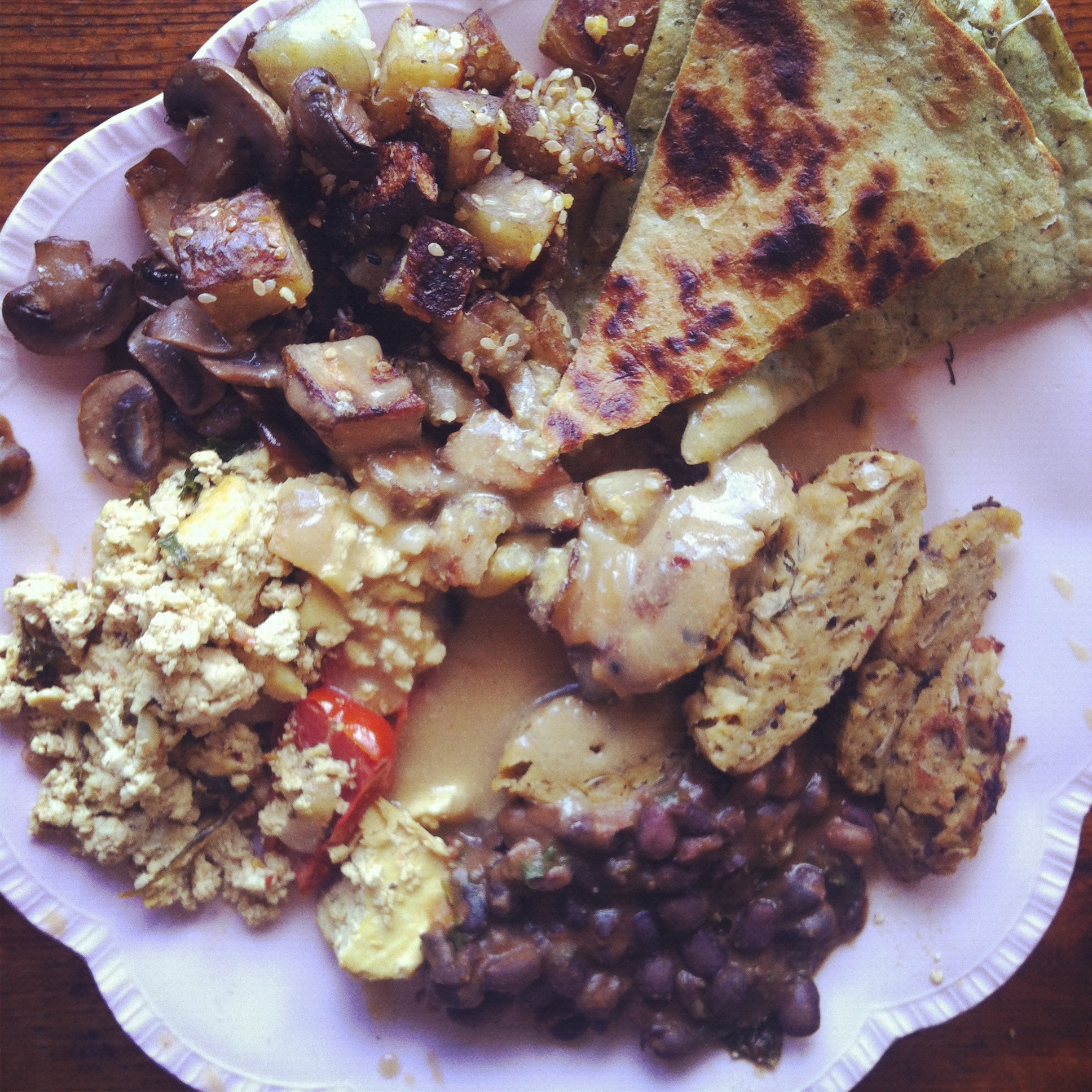 this year i made it a secret restaurant/birthday combo and did a 25 person brunch. it was sort of insane, but also really not very hard. somehow. it was a sit-where-you-want casual deal which cut down on some of the stress of such a big undertaking. i managed to get the portions right on all of it except for the tofu scramble which i made WAY TOO MUCH OF and have been eating in various incarnations since.