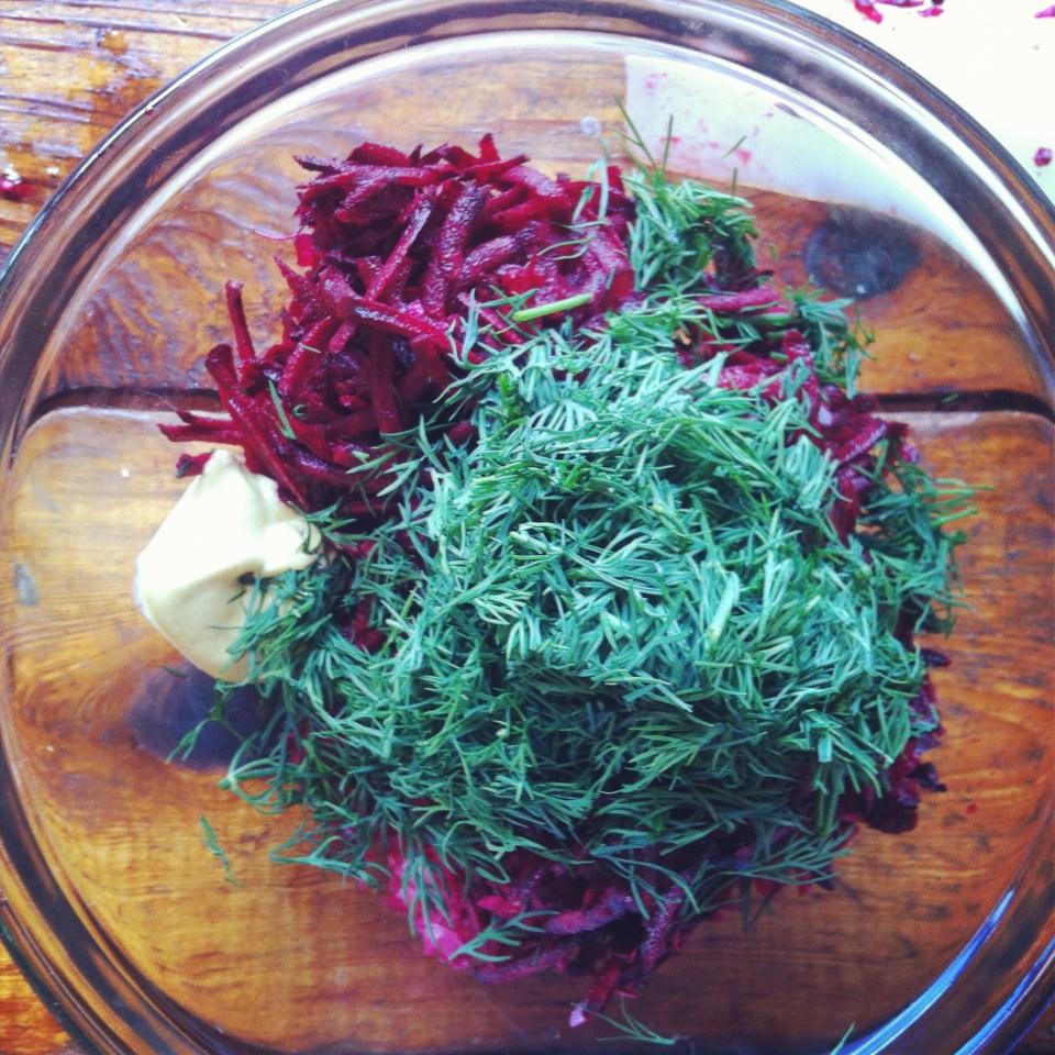 8 small beets, or 4 large ones, tops and tails cut off, grated