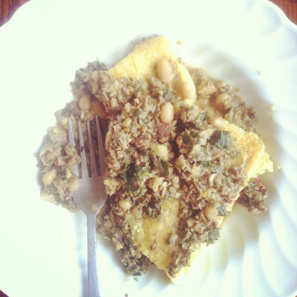 * i also ate polenta with the leftovers from the ravioli filling cooked with a bit of broth just to make it runny.