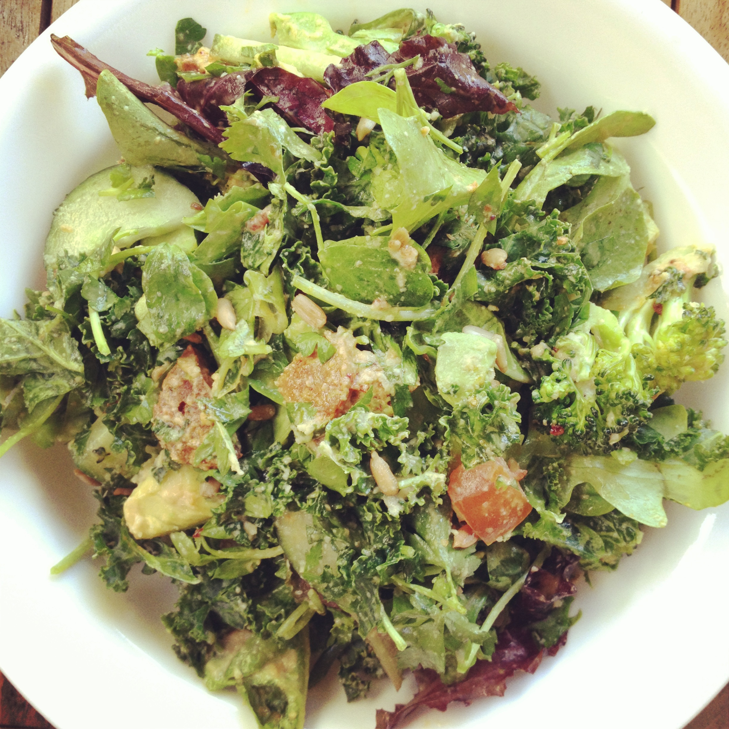 mix it all and thin with water as needed (it’ll depend on the type of tahini you have). toss with salad! eat!