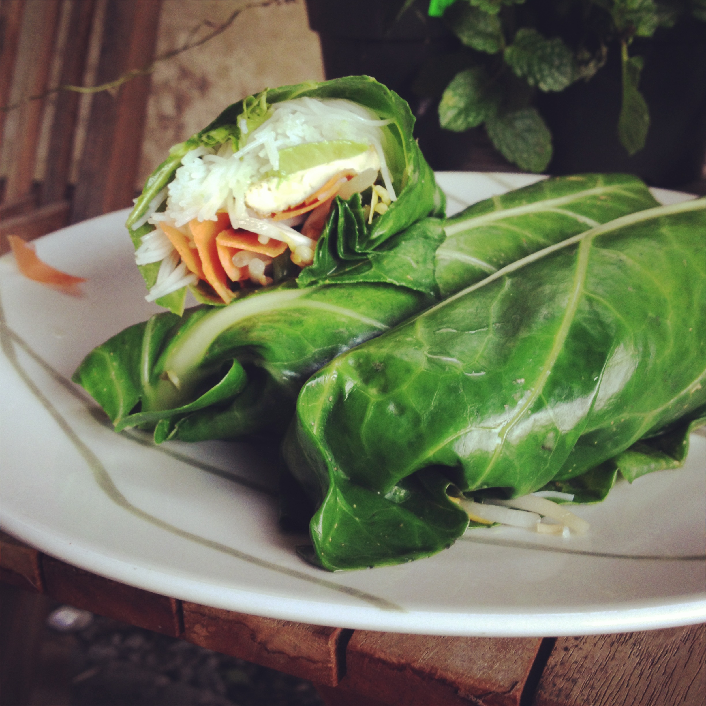 remember when i was going on about how i love collard wraps and how i made salad rolls with collards? well HERE IT IS. the future becomes the present.