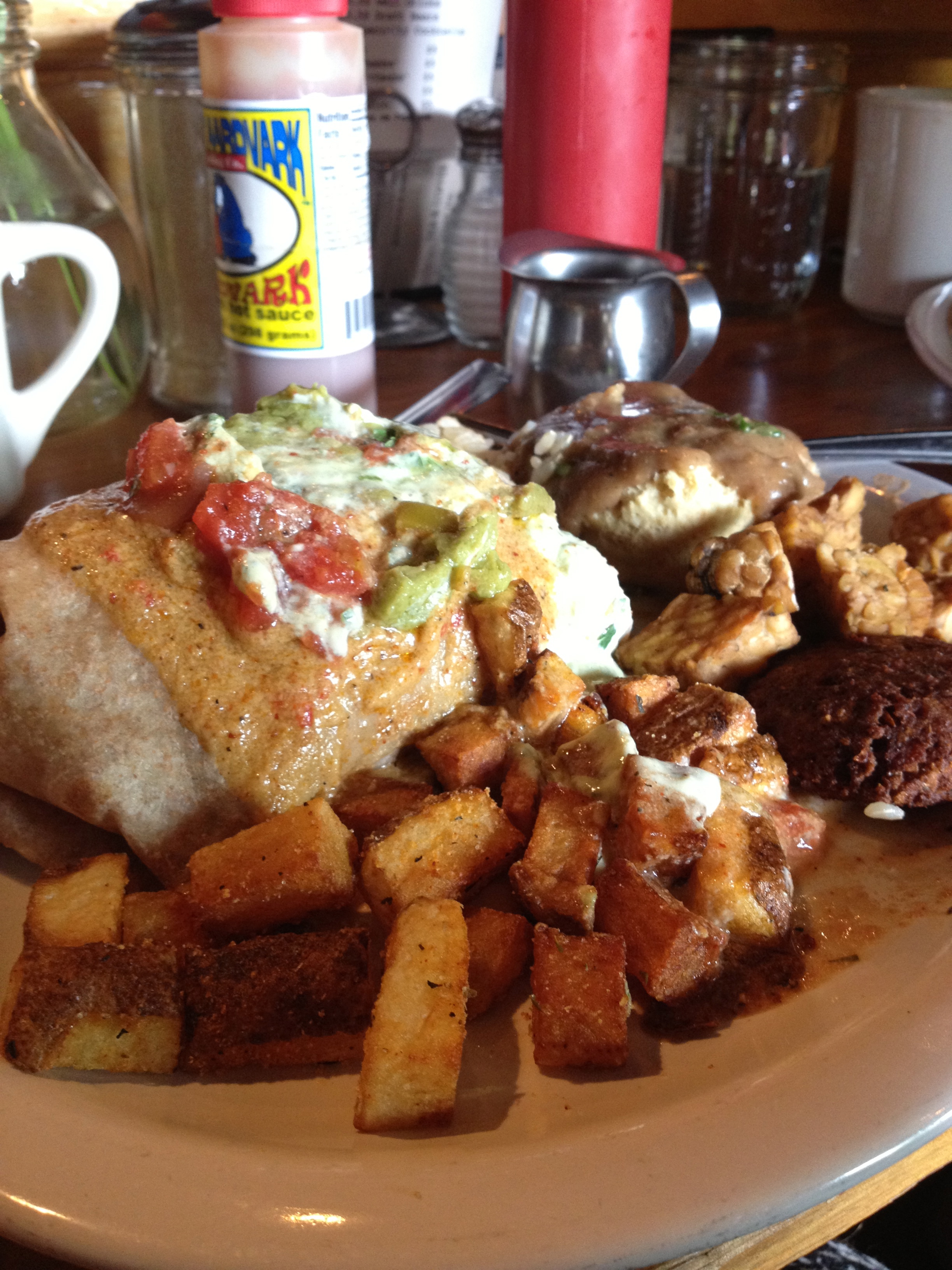 so we went on a bike adventure to Vita for some breakfast treats. We went half half on a breakfast burrito full of veg and tofu and a biscuits n gravy deal with tempeh and sausage. again the taters were top notch. i usually get this breakfast burrito, and I’ll admit that this time it wasn’t as good but it was still GOOD. the biscuits and gravy there were also super good.