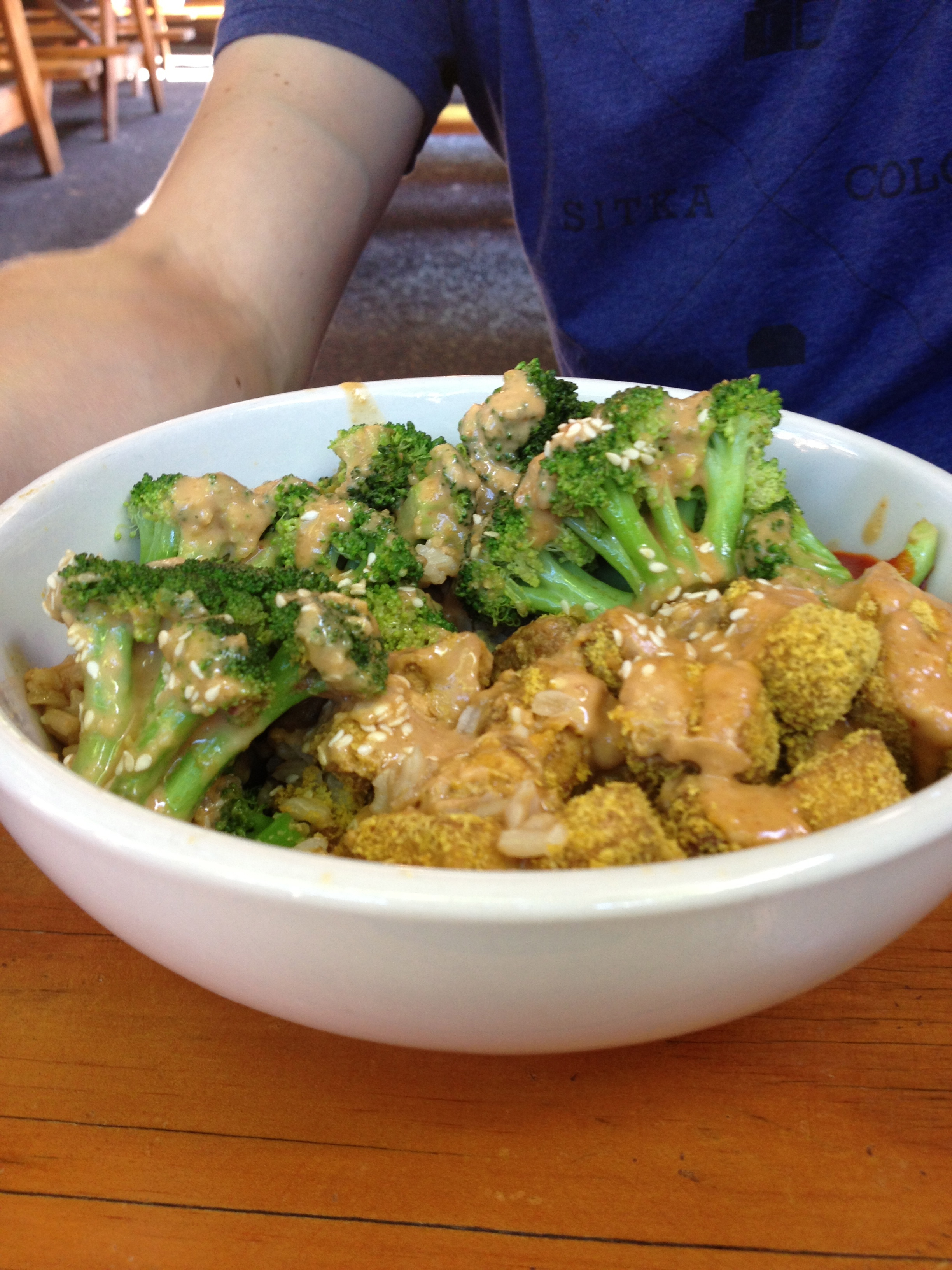 mark went for the brocco tofu bowl just to make me look excessive. here is me in my foodbooze glory.