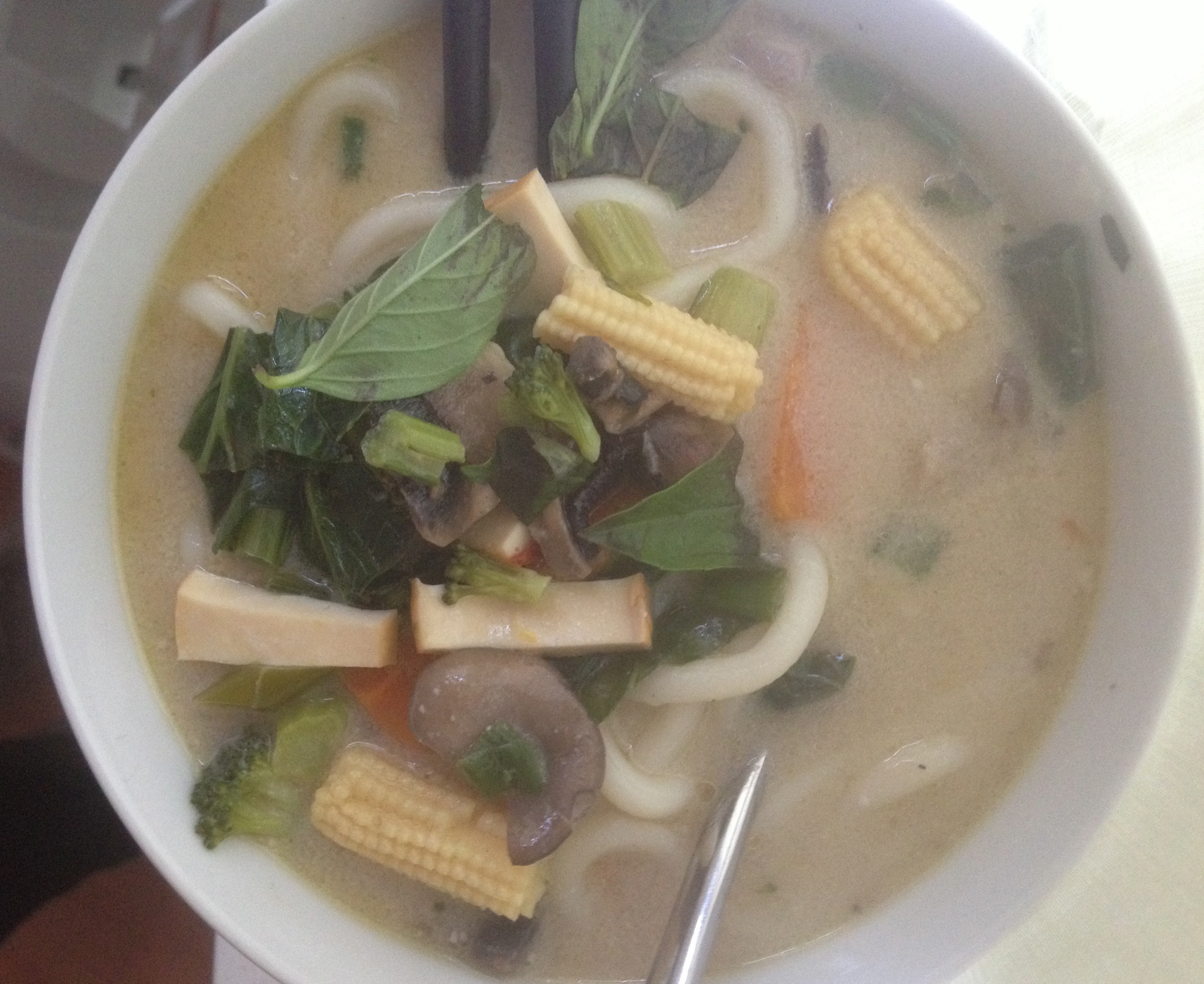 saute mushrooms in a small pan while your broth is simmering. put aside. once the broth is strained and ready, return to heat and bring back to a simmer. add carrots, broccoli, choy sum stems and tofu. cook for 5 minutes, add everything else and turn off heat. you just want the greens to wilt a bit then you’re ready to serve.