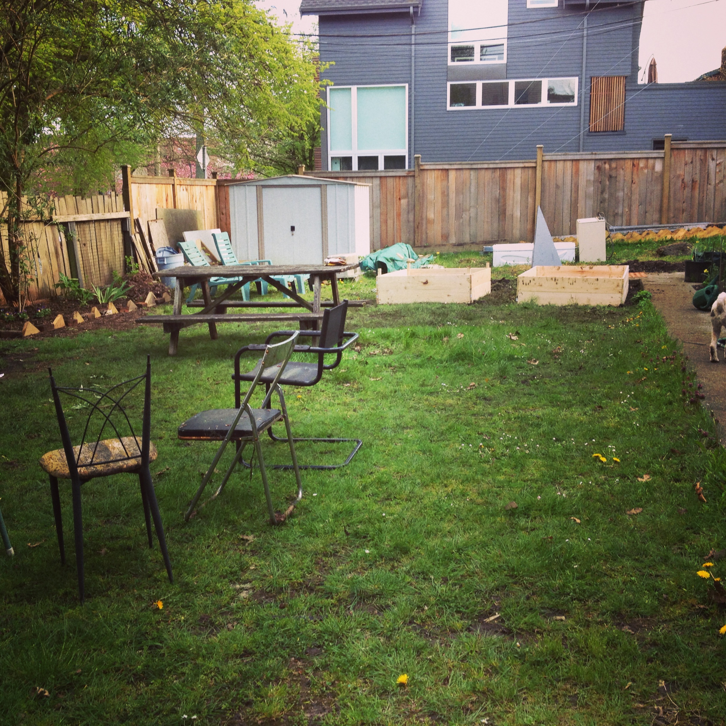 we’ve been working on the garden too! WORKIN REAL HARD! i wish there was a before photo, but let me say that it is looking much better and i can’t wait for real summer to drink cocktails in it all day long. We built 2 more garden boxes since the picture and there’s a bunch more garden space out of frame.