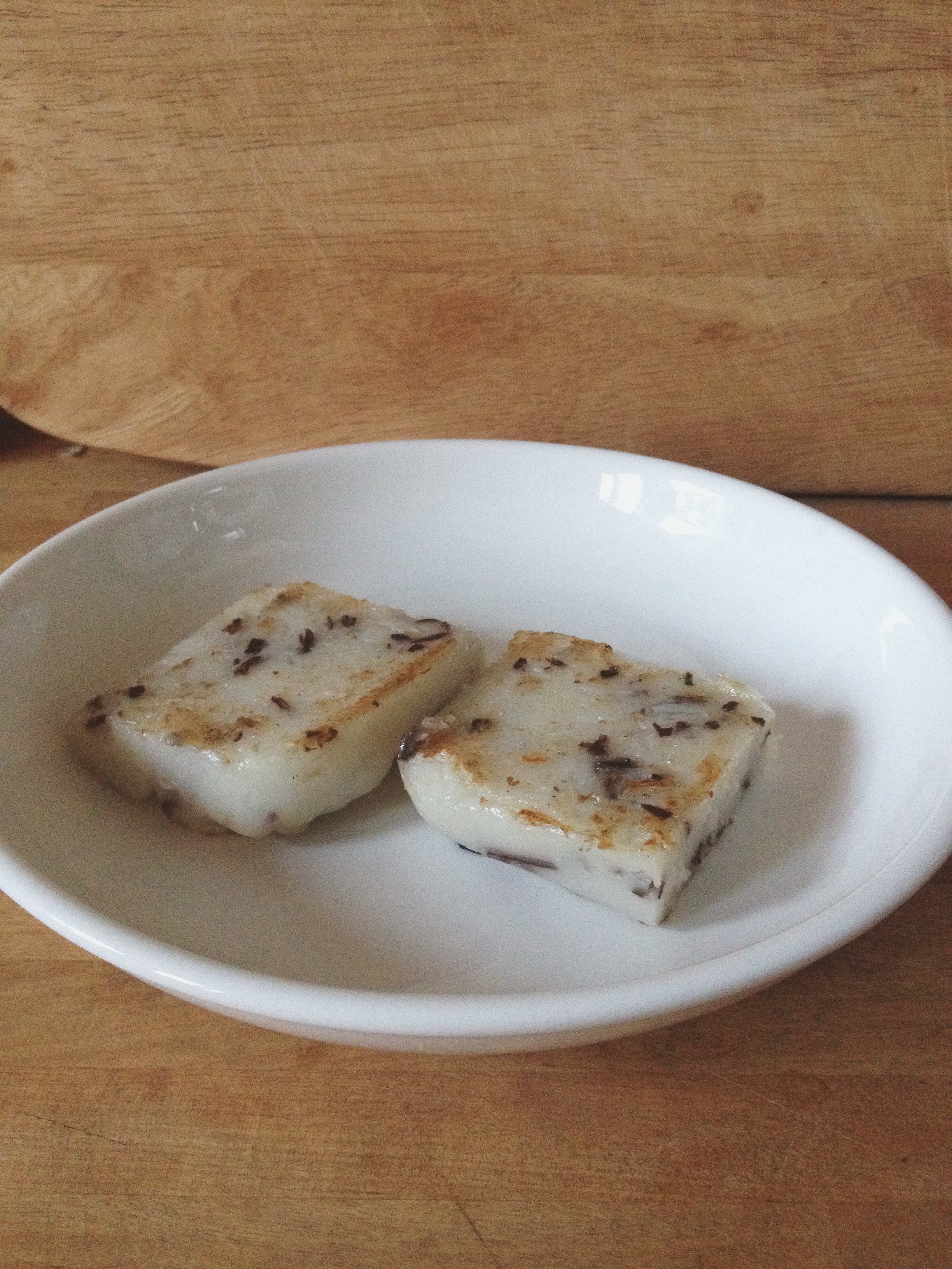 Since realizing that making sichuan food at home is easy and do-able i decided to tackle other restaurant-only dishes. so, DIM SUM. i am very lucky that there is vegan dim sum in Vancouver and I can go fill myself with buns and gluten for about 10 dollars but i wanted to see what was within my own culinary reach. First test was turnip cake, a dim sum favourite of mine.