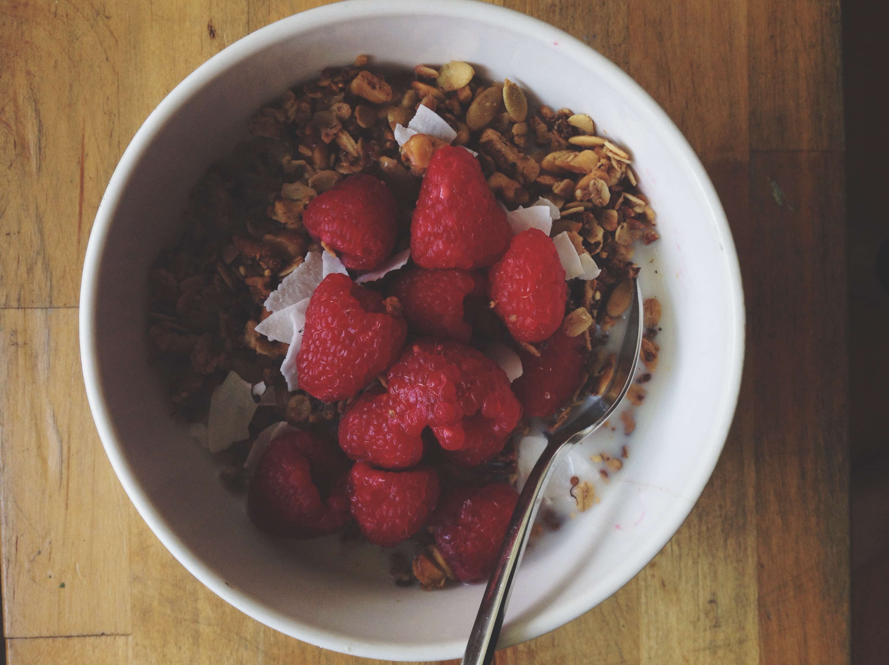 i’ve never made a granola without any sweetener (maple syrup? agave? no way friends) but this turned out pretty well! a little bit of berries or pear on top goes a long way for sweetness. it is part of our cleanse time and we needed a quick breakfast to have on hand (i miss you toast) so i whipped this up. it is partially based on this recipe from Green Kitchen Stories, using the sprouted buckwheat and quinoa and then going off on my own from there.