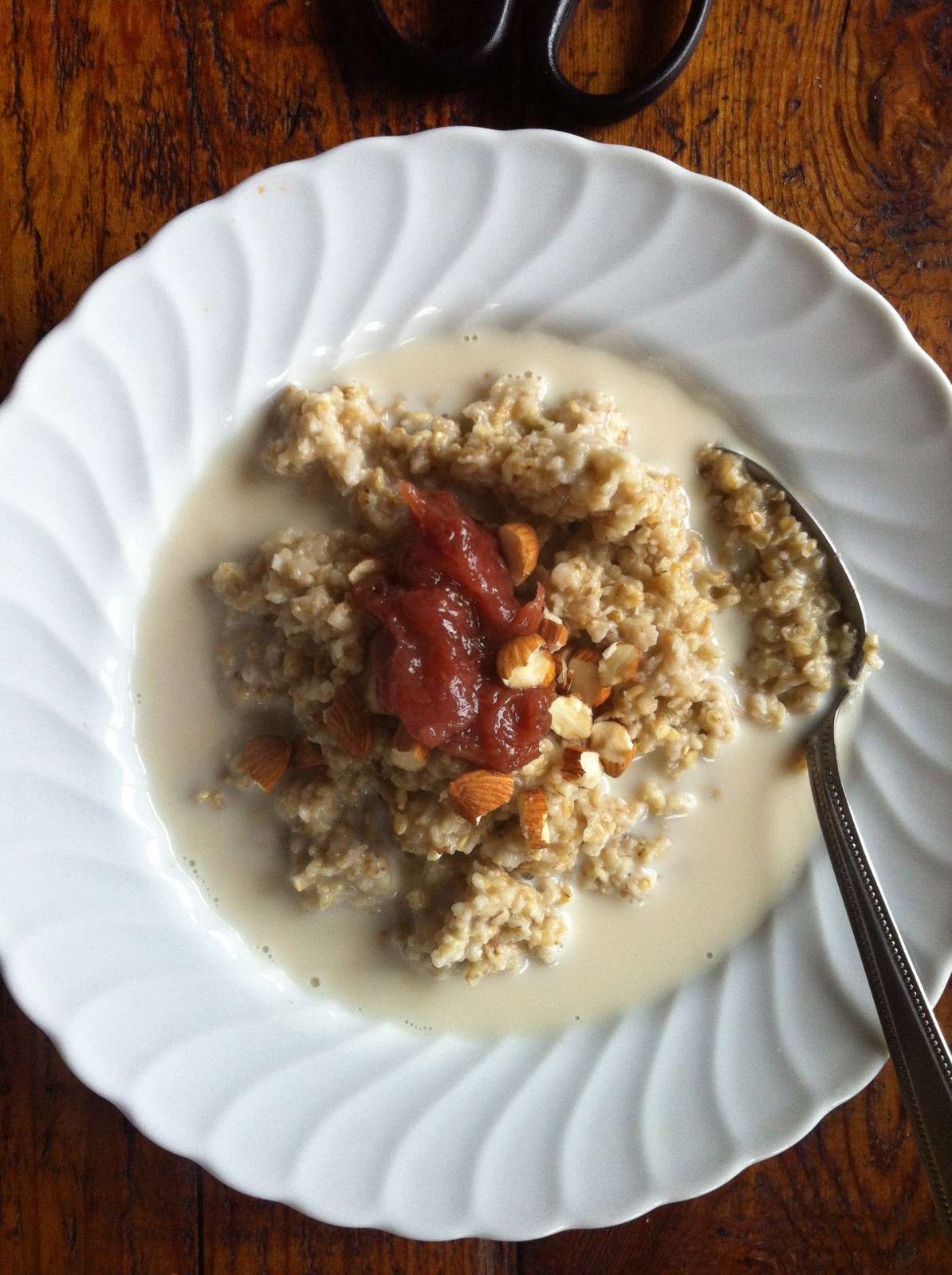 I’ve had the flu this week, so not a lot of cooking has been happening. Almost none, actually. but finally! a recipe! This is a super hearty, rich breakfast for lazy days when you can sit around and have lots of coffee ; PUDDING 6 slices of grainy bread, cut in thirds 1/2 can coconut milk 1 1/2 c. almond milk 1 tbsp maple syrup 1 tsp vanilla 1/4 c unsweetened coconut ribbons 1/2 granny […]